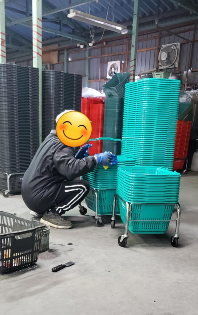 カゴ拭き作業があります。