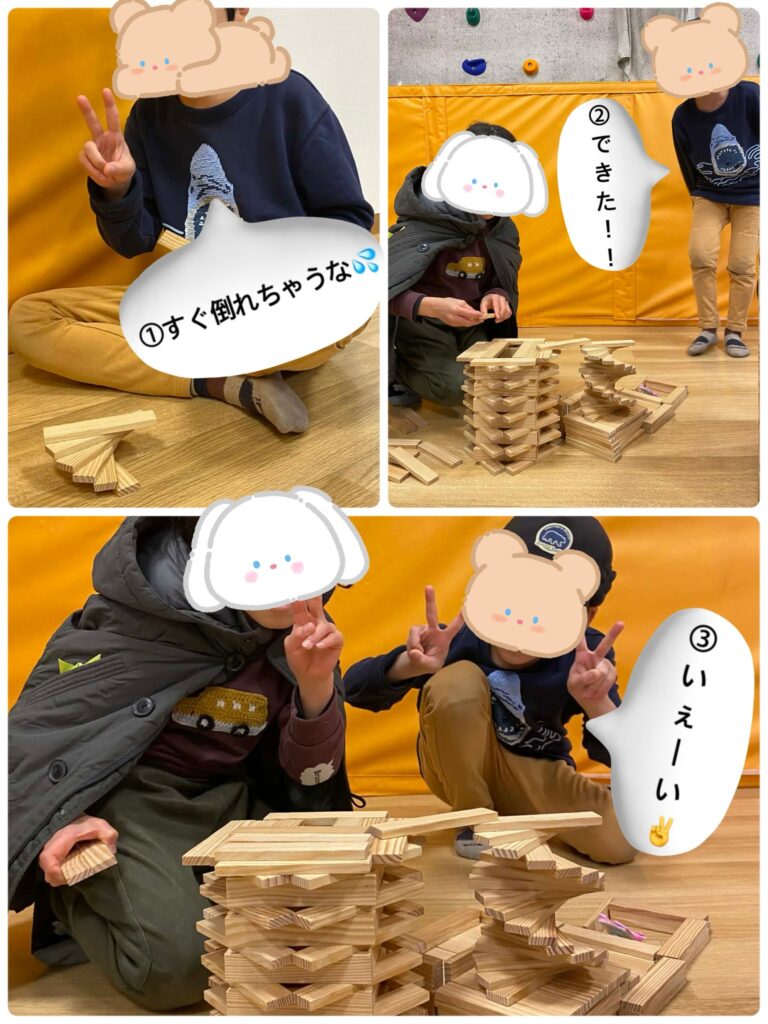 階段作りに挑戦している子がいましたので、様子を見ていると…🧐