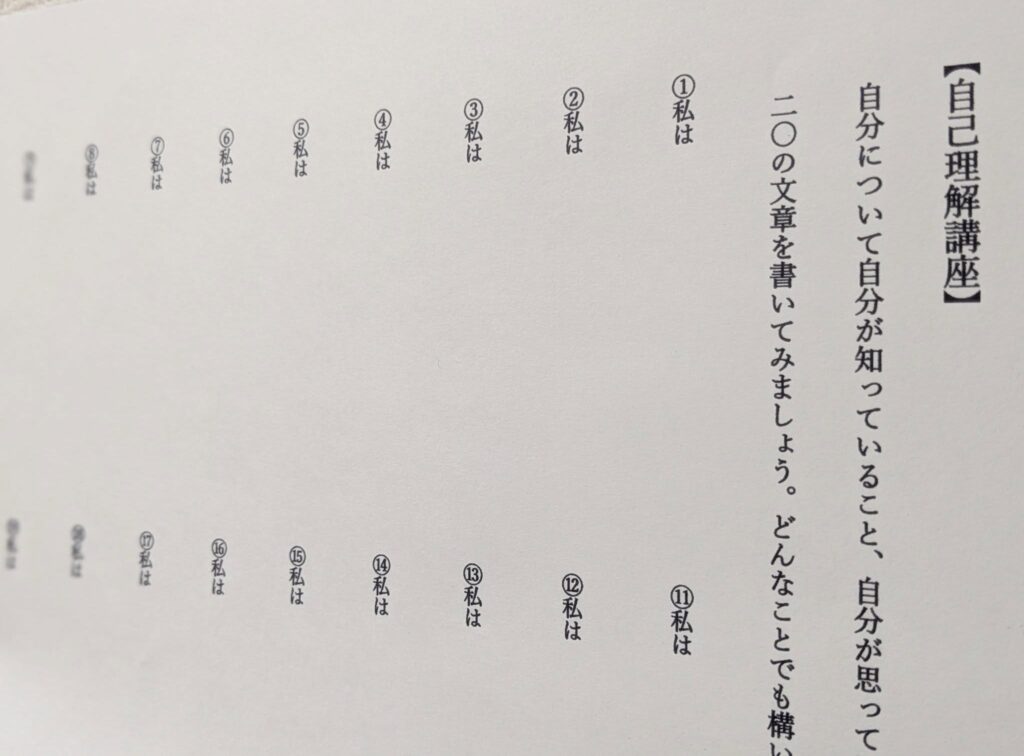 「私は……です」という文を20個作成していきます。