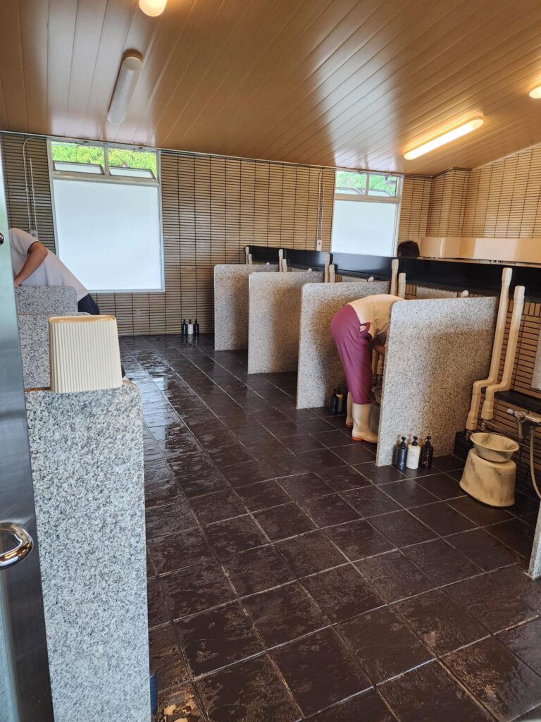 大浴場は少し大きくて熱がこもっているのでとても暑い中で作業を行っています